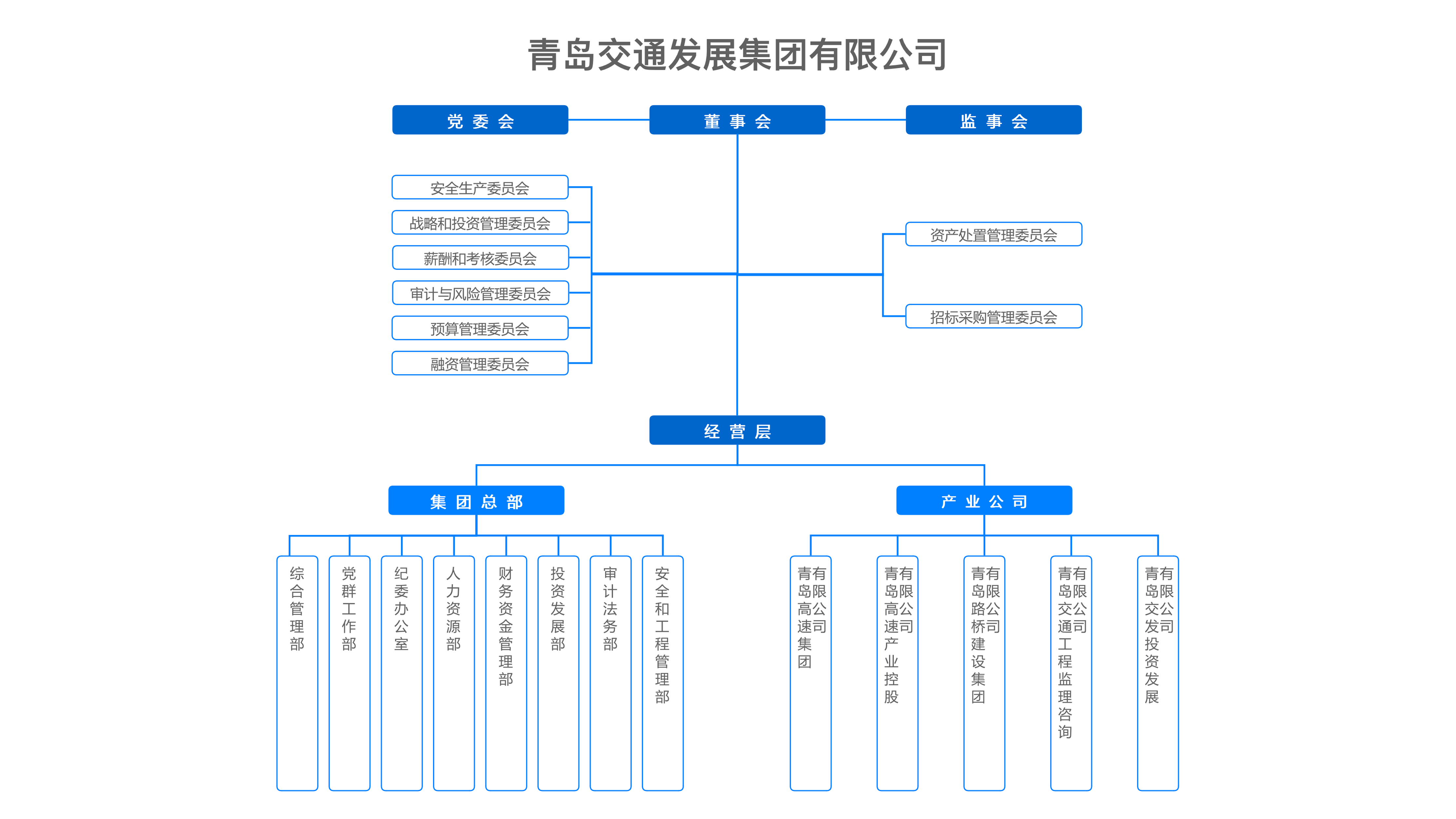 青島交通發(fā)展集團(tuán)有限公司(以下簡稱“交發(fā)集團(tuán)”)成立2012年5月,注冊資本10億元,定位為青島市交通建設(shè)投融資主體,負(fù)責(zé)所轄高速公路等交通基礎(chǔ)設(shè)施的運營、養(yǎng)護(hù)、管理工作和投融資建設(shè)任務(wù),承擔(dān)青島市未來高速公路發(fā)展和交通基礎(chǔ)設(shè)施建設(shè)投融資等職能?,F(xiàn)有所屬二級企業(yè)18戶,干部職工2100余人。